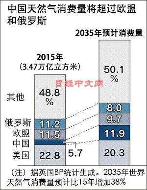 中國政府制定了到2030年的天然氣中長期計劃,英國石油公司(BP)也發(fā)布了到2035年的能源動向預(yù)測。屆時,天然氣的全球消費(fèi)量將超過煤炭,按不同地區(qū)來看,中國消費(fèi)量增加顯著,將超過歐盟和俄羅斯,成為僅次于美國的世界第2大天然氣消費(fèi)國。