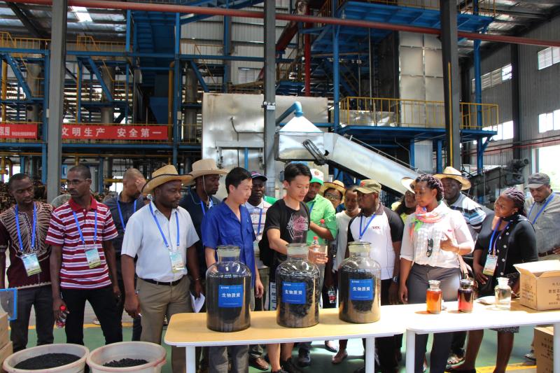 更讓外賓驚奇的是生物質(zhì)熱解聯(lián)產(chǎn)聯(lián)供項目:工人師傅把秸稈等農(nóng)林剩余物輸入熱解爐內(nèi)后,竟然能連續(xù)產(chǎn)出燃氣——目前,該項目燃氣已供鄂州長港鎮(zhèn)峒山村及其周邊千余居民燒水生火做飯;同時還可產(chǎn)出炭和醋液、焦油,這些產(chǎn)品可用于居家生活和工業(yè)生產(chǎn),市場潛力巨大。