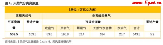 截至2015年底,全國累計(jì)探明常規(guī)天然氣地質(zhì)儲(chǔ)量13.01萬億立方米,剩余可采儲(chǔ)量5.2萬億立方米;累計(jì)探明煤層氣地質(zhì)儲(chǔ)量6293億立方米,剩余可采儲(chǔ)量3063億立方米;累計(jì)探明頁巖氣地質(zhì)儲(chǔ)量5441億立方米,剩余可采儲(chǔ)量1302億立方米。