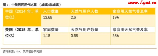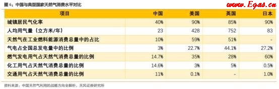 居民天然氣消費擁有很大的潛力,因為目前只有小部分城市居民可使用天然氣。根據(jù)國家統(tǒng)計局?jǐn)?shù)據(jù),中國不到20%的人口可使用管道天然氣,而美國的這一數(shù)字達(dá)58%。隨著可支配收入和生活水平的提高,越來越多的居民出于便利性和清潔性而傾向于使用管道天然氣。