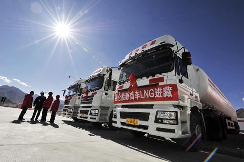 據(jù)青海油田液化天然氣公司副經(jīng)理趙舉介紹,拉薩城區(qū)所有天然氣站內(nèi)的LNG,均來自千里之外的青海油田格爾木液化天然氣生產(chǎn)工廠。每天約有100噸LNG通過大型槽車穿越“生命禁區(qū)”可可西里和海拔5000多米的唐古拉山運(yùn)至拉薩。