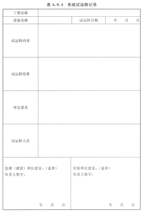 A.0.4系統(tǒng)試運(yùn)轉(zhuǎn)記錄可按表A.0.4的格式記錄。
