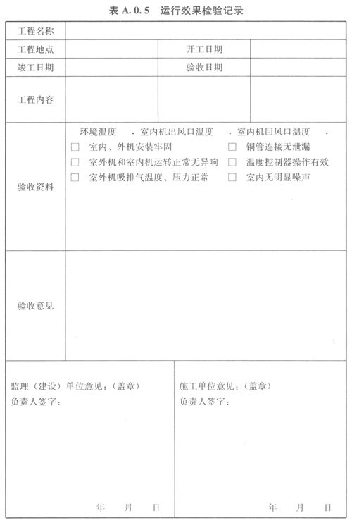A.0.5運(yùn)行效果檢驗(yàn)記錄可按表A.0.5的格式記錄。