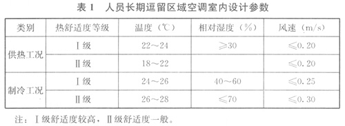 1人員長期逗留區(qū)域空調(diào)室內(nèi)設(shè)計參數(shù)應(yīng)符合表1的規(guī)定:
