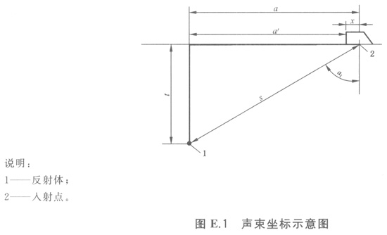 使用脈沖波技術,應在示波屏上設置超聲時基線。一束透射聲束的聲程距離、深度、水平距離、或者扣除前沿的水平距離的坐標,見圖E.1。除非另有注明,下述所提及設定時基線工藝是指聲束傳播的聲程距離(一個回波等于兩次的傳播路徑)。