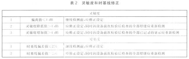 依據(jù)本標(biāo)準(zhǔn)和附錄E要求,每次檢測前應(yīng)設(shè)定時(shí)基線和靈敏度,并考慮溫度的影響,時(shí)基線和靈敏度設(shè)定時(shí)的溫度與焊縫檢測時(shí)的溫度之差不應(yīng)超過15℃。