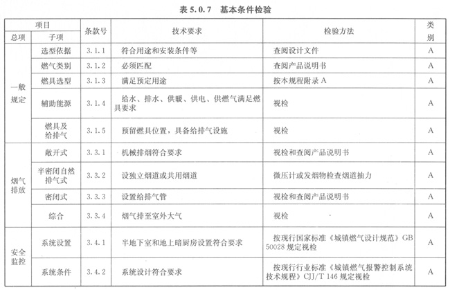 5.0.7燃具基本條件應(yīng)按表5.0.7的規(guī)定進(jìn)行檢驗。