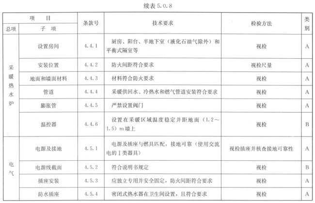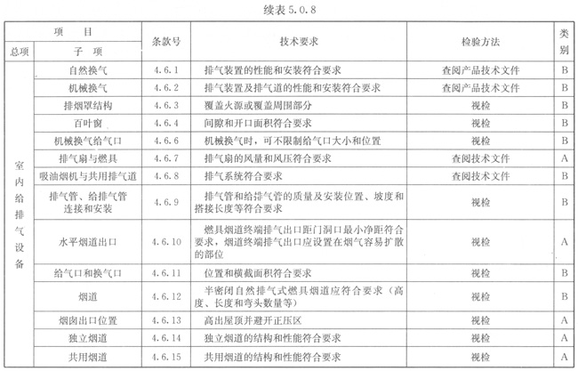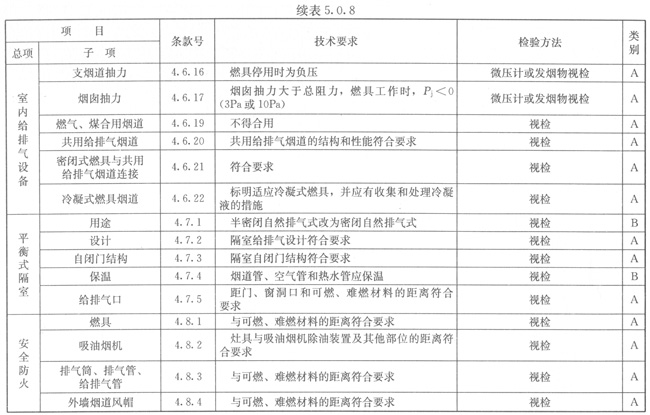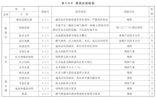 5.0.8燃具安裝應(yīng)按表5.0.8的規(guī)定進(jìn)行檢驗。
