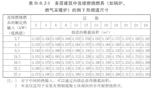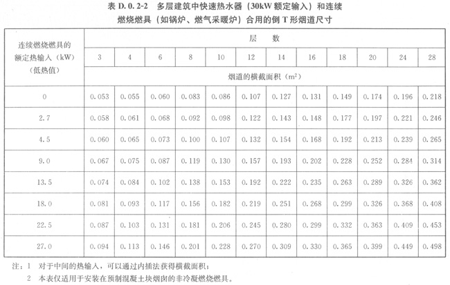 2當(dāng)采暖模式的最大燃?xì)饬髁啃∮跓崴J降淖畲笕細(xì)饬髁繒r,倒T形煙道尺寸應(yīng)按表D.0.2-2的規(guī)定采用。