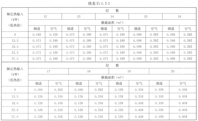 D.0.2共用給排氣煙道(圖D.0.1-1~圖D.0.1-4)的橫截面積可根據(jù)下列規(guī)定確定: