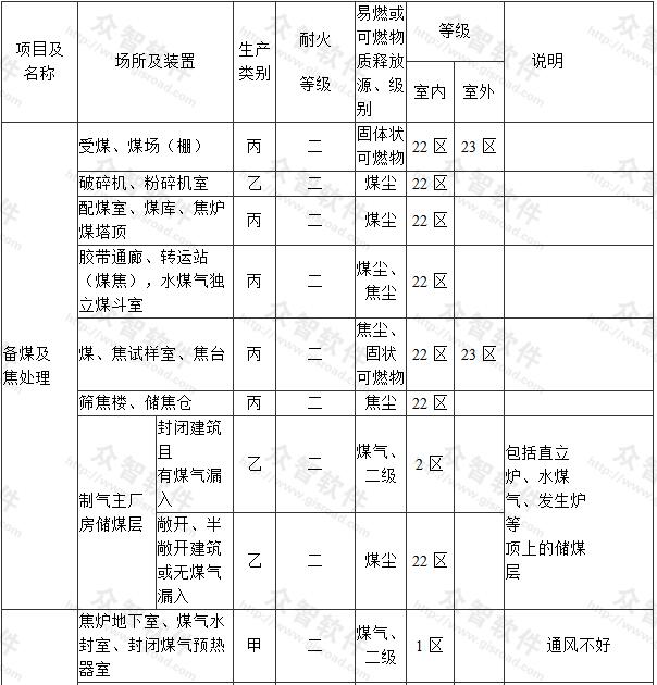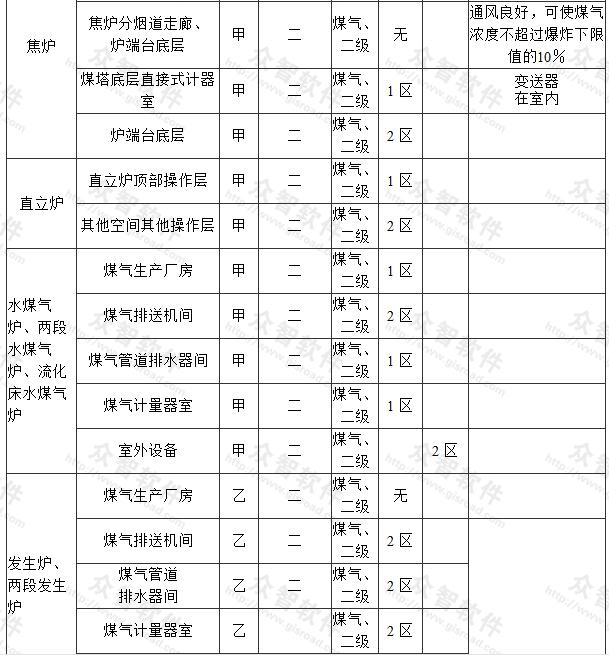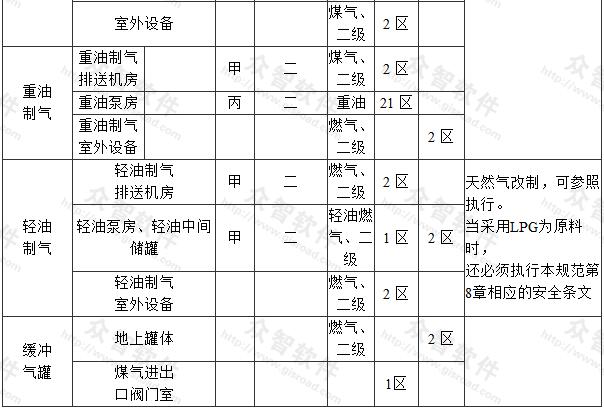 附錄A 制氣車間主要生產(chǎn)場所爆炸和火災危險區(qū)域等級