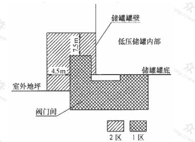 儲罐底部至地坪以上的范圍(半徑c不小于4.5m)為2區(qū)。