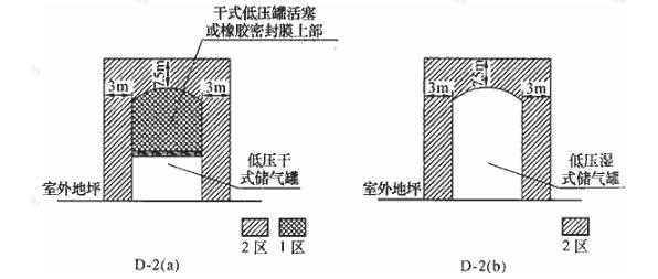 圖D-3 低壓儲氣罐進(jìn)出氣管閥門間的爆炸危險區(qū)域等級和范圍的劃分