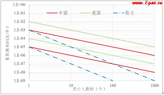圖5 各國家地區(qū)的社會可接受風(fēng)險標(biāo)準(zhǔn)對比