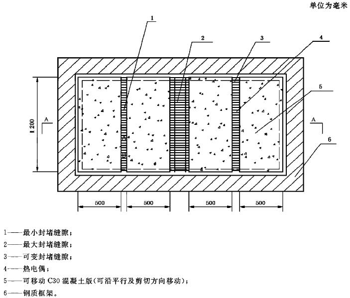 A.7 框架內(nèi)用于支撐縫隙的板材為C30混凝土板(砼板受火面保護(hù)層厚度為10mm)。對于縫隙封堵材料,可根據(jù)委托方的要求,在實(shí)施耐火試驗前或試驗過程中采用機(jī)械的方式移動縫隙,移動方式可以是沿被支撐的平面移動縫隙的寬度,也可以是沿剪切方向或其他方向移動,移動的最大距離應(yīng)根據(jù)縫隙封堵材料的性能由委托方確定。