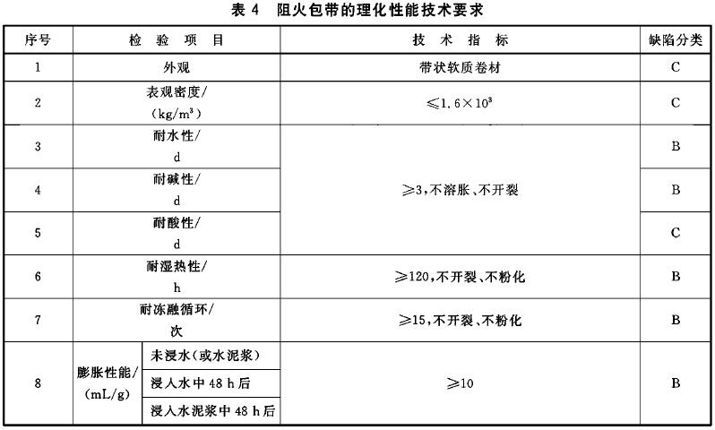 5.3.3  阻火包帶的理化性能應符合表4的規(guī)定。