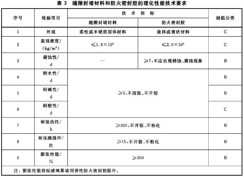 5.3.2  縫隙封堵材料和防火密封膠的理化性能應符合表3的規(guī)定。