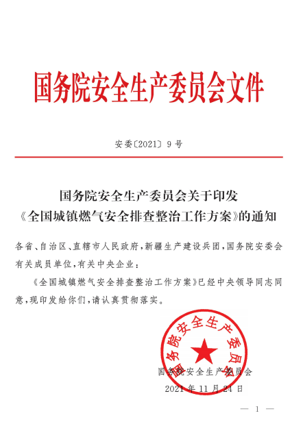 全國(guó)城鎮(zhèn)燃?xì)獍踩珜m?xiàng)整治工作方案