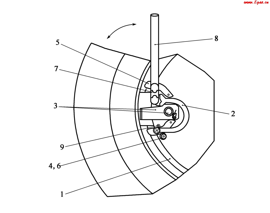 (3)萬向柄一端插入鎖帶驅(qū)動(dòng)臂的孔中,逆時(shí)針旋轉(zhuǎn)手柄,使鎖帶縮回至鎖帶凹槽。