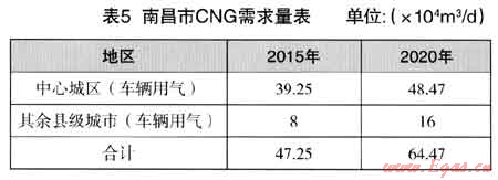 根據(jù)測算,南昌市區(qū)CNG需求量2015年將達(dá)到47.25萬m3/d,2020年將達(dá)到64.47萬m3/d。