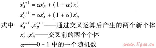 ⑤ 交叉運算:交叉運算是遺傳算法中產(chǎn)生新個體的主要操作過程。由于本文采用實數(shù)編碼,因此選用算術(shù)交叉,其表達(dá)式為: