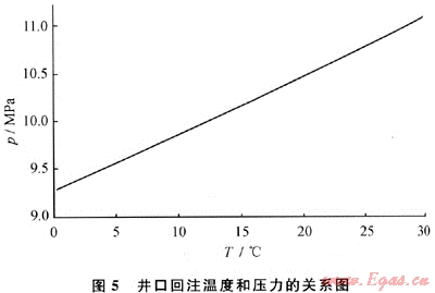 在這種情況下,由于壓力較低,在整個(gè)井筒酸氣為氣相,回注壓力受溫度分布的影響不大。