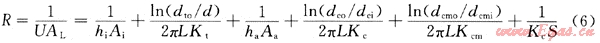 該熱交換的總傳熱系數(shù)和熱阻可由式(6)計(jì)算: