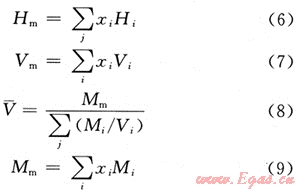 Hi及Vi均通過(guò)狀態(tài)方程求取,Hi的計(jì)算還要對(duì)熱容(Cpi)進(jìn)行估計(jì)。