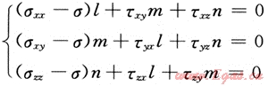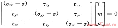 式中:σ是主應(yīng)力,l、m、n是各自主應(yīng)力與x、y、z的方向余旋。