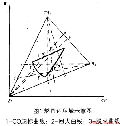 開發(fā)設(shè)計燃具時,首先要決定使用某類燃?xì)?。根?jù)某類燃?xì)獾幕鶞?zhǔn)氣[1]設(shè)計、生產(chǎn)后按照基準(zhǔn)氣及界限試驗氣的要求(包括壓力)調(diào)整檢驗出廠。當(dāng)燃?xì)庑再|(zhì)(成分)發(fā)生變化時,其工作狀態(tài)必然改變。如果燃?xì)獬煞肿兓谀骋唤缦薹秶鷥?nèi),它仍能保持正常工作。這就是燃具對燃?xì)獬煞肿兓倪m應(yīng)能力,稱為燃具的適應(yīng)性。每個燃具都有一定的適應(yīng)能力。量化這個適應(yīng)能力,可以用燃具適應(yīng)燃?xì)獬煞肿兓姆秶鷣肀硎?。適應(yīng)燃?xì)獬煞肿兓姆秶鷧^(qū)間稱為燃具適應(yīng)域。適應(yīng)域的范圍越寬,表示燃具的適應(yīng)燃?xì)鈿赓|(zhì)變化的能力越強(qiáng)[2]。