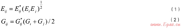二元參數(shù)Eij,Gij的計算式為: