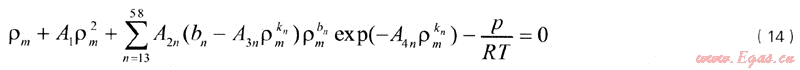 AGA8-92DC方程來自美國煤氣協(xié)會(AGA)。美國煤氣協(xié)會在天然氣壓縮因子和超壓縮因子表的基礎(chǔ)上,開展了大量研究,于1992年發(fā)表了以狀態(tài)方程為基礎(chǔ)計算壓縮因子的AGA No.8報告及AGA8-92DC方程[2]。