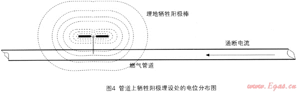 ④ 計算犧牲陽極IRC法:外加在管道上的電流在與其連接的犧牲陽極上形成的電位差VTC可通過下式計算