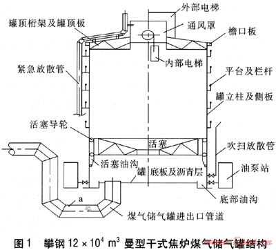2008年11月攀鋼12×104m3曼型干式焦?fàn)t煤氣儲氣罐開始拆除,2009年3月完工,整個實施工期為120d。因國內(nèi)無大型焦?fàn)t煤氣儲氣罐拆除經(jīng)驗可循,我單位成立了安全、技術(shù)、消防、保衛(wèi)等專業(yè)參加的項目組,實行項目管理,在整個拆除工程管理上,項目組與施工方充分發(fā)揮各自的專業(yè)優(yōu)勢,不斷優(yōu)化、改進(jìn)施工方案、施工工藝及現(xiàn)場管理制度,安全、環(huán)保地完成了國內(nèi)首例大型干式焦?fàn)t煤氣儲氣罐的拆除工程。