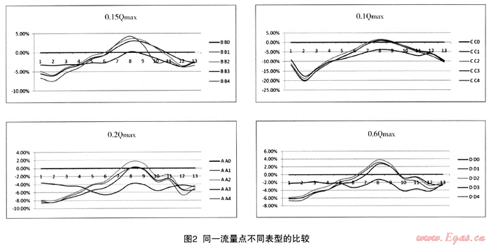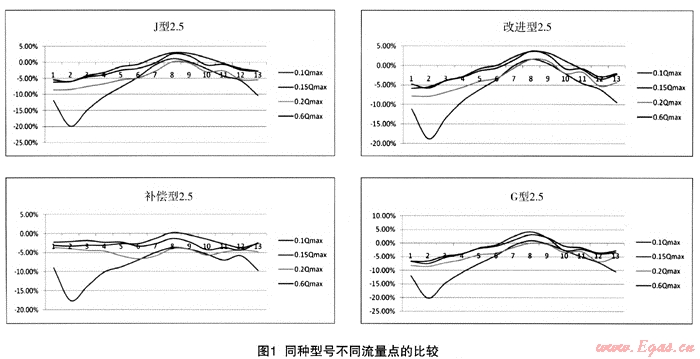 (1) 同種型號(hào)不同流量點(diǎn)的比較,見圖1。