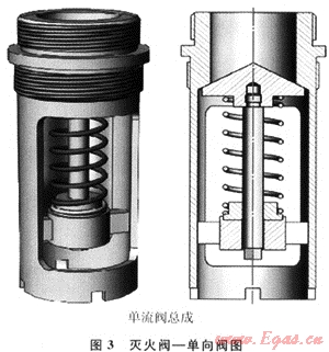 任何井下起火乃至爆炸,都要有足夠的氧氣來點火、足夠的燃料來支撐和火源,這3個條件必須同時達(dá)到。根據(jù)該思路,如果在鉆柱上接一個接頭,能夠阻斷氧氣供應(yīng)的話,就可以使火熄滅。為此,研制設(shè)計了鉆柱防火接頭——滅火閥,它是在井下發(fā)生著火或燃爆時自動切斷氣體混合通道,制止事態(tài)擴大的一種有效工具。