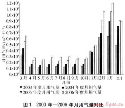 表1 2003年—2006年冬季用氣情況