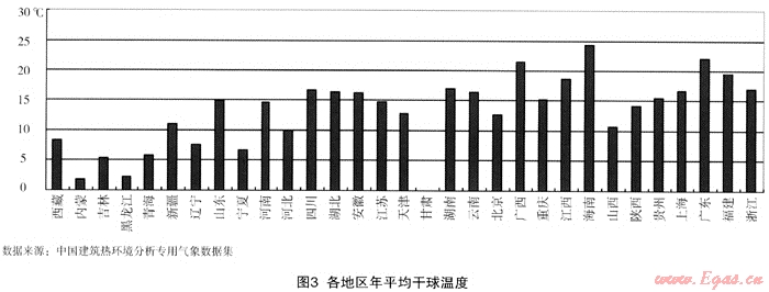 式中:c=4.18kJ/kg·℃,為水的比熱;m=40kg,為洗澡用水量;t1為熱水器進(jìn)水溫度(取當(dāng)?shù)啬昶骄汕驕囟纫妶D3);t2=40℃為熱水器出水溫度;n=120為洗澡次數(shù);η=80%,為熱水器效率;H1=20.4MJ/m3,為沼氣的低熱值(取沼氣成分為CH460%,CO240%)。各地區(qū)人均沼氣需求量即炊事用氣和生活熱水用氣之和,結(jié)果見圖2,圖中可以看出,西藏、內(nèi)蒙、吉林、黑龍江、青海、新疆、遼寧、山東、寧夏、河南等10個(gè)農(nóng)業(yè)或畜牧大省的沼氣理論產(chǎn)量能滿足農(nóng)民持續(xù)用氣需求。沼氣富余地區(qū)可以考慮發(fā)展沼氣采暖,沼氣不足地區(qū)則需要其他能源的補(bǔ)充。