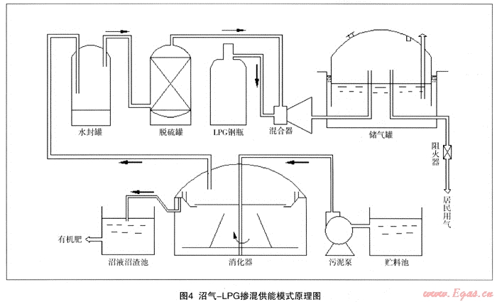 中國(guó)農(nóng)村落后、低效率的生活用能模式嚴(yán)重制約著國(guó)家能源的可持續(xù)發(fā)展,尋求適合農(nóng)村發(fā)展的高效能源利用模式迫在眉睫。本文通過(guò)分析農(nóng)村現(xiàn)有生物質(zhì)資源產(chǎn)沼氣能力和生活用能潛在需求之間的關(guān)系,指出我國(guó)大部分農(nóng)村存在沼氣發(fā)酵原料不足的問(wèn)題,提出通過(guò)氣體混合裝置向沼氣中摻混一定比例的LPG,再通過(guò)管網(wǎng)輸送到用戶。