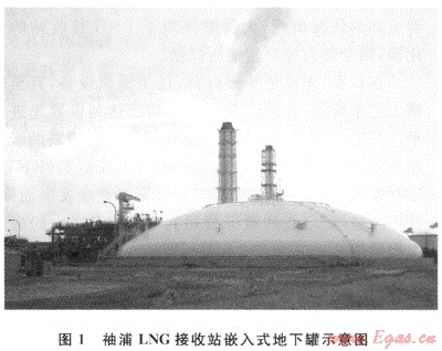 日本LNG接收站的儲(chǔ)罐,部分為地上罐,更多的是地下罐。日本這種大量采用地下罐的情況,幾乎為世界獨(dú)有現(xiàn)象,其原因可能為基于地震的安全考慮。具體的罐的類(lèi)型分為:地上罐、半地下(上)罐、嵌入式地下罐、全地下罐。嵌入式地下罐為頂部或少量罐體露出地面,罐內(nèi)液體高度最高不超過(guò)地面;全地下罐為整個(gè)罐均處于地面下。地下罐的罐頂又分為兩種:拱頂形和平頂形。為保護(hù)環(huán)境景觀,地下罐周?chē)?、甚至平頂?shù)叵鹿薜捻敳浚N植草木[6]。接收站除有LNG罐外,部分接收站還有LPG罐。