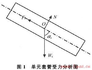 在大斜度井中,對(duì)斜井段常規(guī)下入法套管單元受力分析(見(jiàn)圖1),下套管作業(yè)時(shí)井口載荷為[6]:
