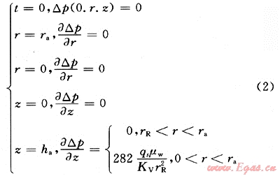 根據(jù)已建立的裂縫型底水氣藏底水驅(qū)模型,考慮氣水界面處的多級(jí)壓力降,采用徑向流坐標(biāo)系中二維擴(kuò)散方程表示水流從水層流向氣層,定義滲流方程為: