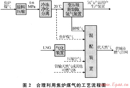將煉焦企業(yè)、氫氣產(chǎn)品用戶與燃氣企業(yè)聯(lián)合起來,先將焦爐煤氣中的氫氣組分分離提純,以提高其附加值,然后將剩余的解吸氣體用于生產(chǎn)代天然氣產(chǎn)品供應(yīng)城市燃氣管網(wǎng),實現(xiàn)低值產(chǎn)品高值利用。采用這種集成的工藝技術(shù),能夠使各種工況下的能源利用得到最優(yōu)化,是焦爐煤氣綜合利用的發(fā)展方向之一。
