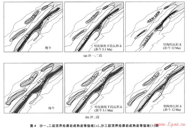 摘要:為研究渤海東北部海域遼東灣地區(qū)烴源巖的演化史,運(yùn)用盆地模擬技術(shù),在恢復(fù)該區(qū)熱演化史和埋藏史的基礎(chǔ)上,利用EASY%Ro計(jì)算模型對10條測線進(jìn)行烴源巖成熟度演化分析,勾畫出烴源巖演化平面圖,得出遼中凹陷和遼西凹陷烴源巖的演化特征。研究結(jié)果表明:①遼中凹陷中北洼熱演化程度明顯高于南洼;②遼西凹陷北洼、南洼、中洼熱演化程度基本相同;③遼中凹陷比遼西凹陷熱演化程度高;④現(xiàn)今,遼中凹陷深部古近系沙河街組三段和沙一、二段烴源巖處于高成熟階段,凹陷邊緣處于重要生油區(qū),遼西凹陷主力烴源巖處于生油氣高峰。