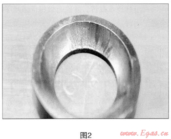 (1) 在壓縮氣體行業(yè),采用液壓加氣子站車裝卸運(yùn)輸高壓天然氣時(shí),閥門在開啟時(shí)壓力非常高,并通常含有一定量的雜質(zhì),氣體或液壓油在流動的過程中,在高壓的作用下,當(dāng)高壓循環(huán)油或天然氣通過閥門時(shí),由于柱塞泵瞬間壓力過大,氣體溫度會快速升高,使聚甲醛閥體的。型密封圈變軟,這使氣體的雜質(zhì)在高壓的沖擊下,很容易在通過閥體時(shí)放射性劃傷密封面(見圖2),造成氣體泄漏。