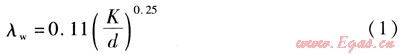 式中λw——以水為供熱介質(zhì)時(shí)摩擦阻力系數(shù)
