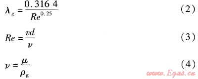 式中λg——以乙二醇水溶液為供熱介質(zhì)時(shí)摩擦阻力系數(shù)