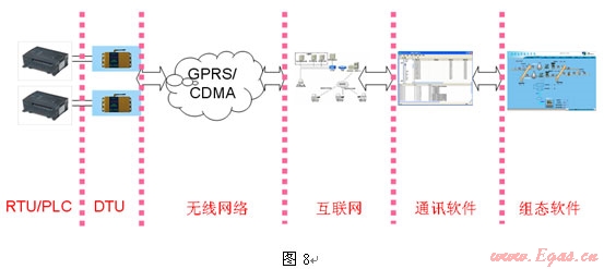 對城市燃?xì)獯笥脩?、管網(wǎng)不利點、區(qū)域計量站等實時性要求不高的站點一般采用CDMA X1/GPRS 無線通信方式,無線通信優(yōu)點是運(yùn)行費用低,但通信實時性、通信網(wǎng)絡(luò)穩(wěn)定性和可靠性都不高。為了解決無線通信軟件缺陷,可以通過開發(fā)多功能通信軟件來彌補(bǔ)無線通信實時性和穩(wěn)定性不高的缺陷。