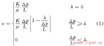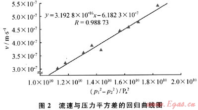 可以看出,v與p12-p22為通過原點的線性關(guān)系。當存在啟動壓力梯度時應該為: