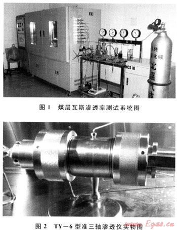 煤的滲透性研究對(duì)于研究瓦斯在煤層中的運(yùn)移非常重要[1~8],煤礦開采中的各種瓦斯動(dòng)力現(xiàn)象如煤與瓦斯突出、煤層氣開采過程、瓦斯抽放等均與煤層的滲透性有關(guān)。我國(guó)煤層的滲透率一般為0.1~10mD,僅個(gè)別礦井測(cè)試數(shù)據(jù)達(dá)數(shù)十毫達(dá)西。與常規(guī)天然氣在巖層孔隙內(nèi)呈游離態(tài)的賦存狀態(tài)不同,煤層瓦斯在煤層裂縫系統(tǒng)中是游離狀態(tài),在孔隙和裂隙表面則以吸附狀態(tài)存在且90%以上都被吸附在煤基質(zhì)塊中。當(dāng)煤層溫度升高時(shí),部分吸附瓦斯要解吸出來,變?yōu)橛坞x瓦斯,而溫度降低時(shí),部分游離瓦斯變?yōu)槲酵咚梗簩油咚沟倪@種吸附解吸特性對(duì)煤層滲透性能有重要影響。另外,在煤礦生產(chǎn)過程中,因采動(dòng)影響,煤層應(yīng)力重新分布,形成應(yīng)力降低區(qū)、集中區(qū)和原始區(qū),應(yīng)力的降低和集中使部分煤體伸張和壓縮變形,煤的滲透性發(fā)生變化,從而影響瓦斯的流動(dòng)。因此,筆者實(shí)驗(yàn)研究了應(yīng)力和溫度影響下煤體的滲流規(guī)律,以期為煤礦瓦斯突出機(jī)理、瓦斯抽放的設(shè)計(jì)和優(yōu)化提供一定的理論參考。